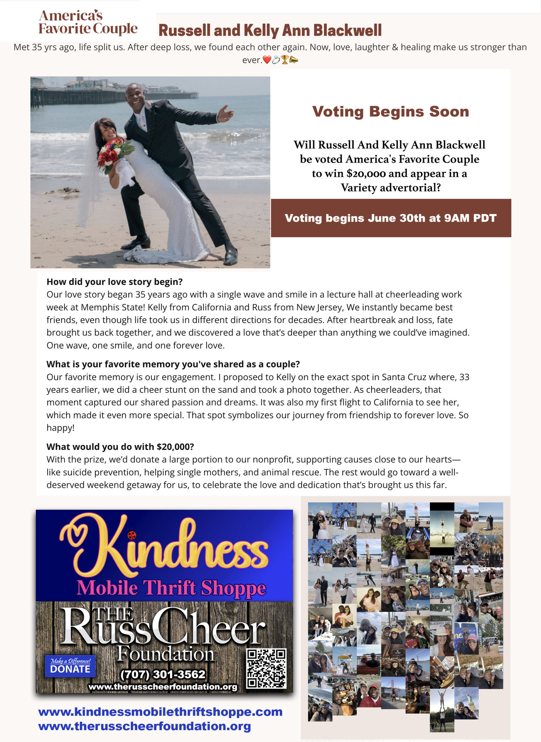 In collaboration with the RussCheer Foundation, all proceeds from The Kindness Mobile Thrift Shoppe are dedicated to vital causes, including suicide prevention, support for single mothers and their children, empowerment for underserved communities, and animal rescue initiatives.